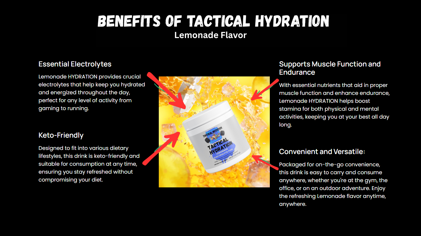 Hydration isn’t optional—it’s performance fuel. Tactical Hydration: Lemonade Electrolyte Fuel helps you recover faster, perform longer, and stay sharper—without sugar, caffeine, or artificial ingredients.